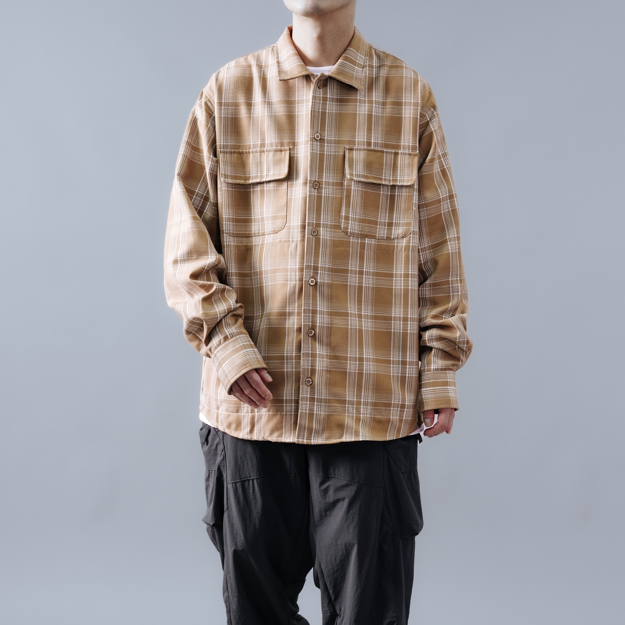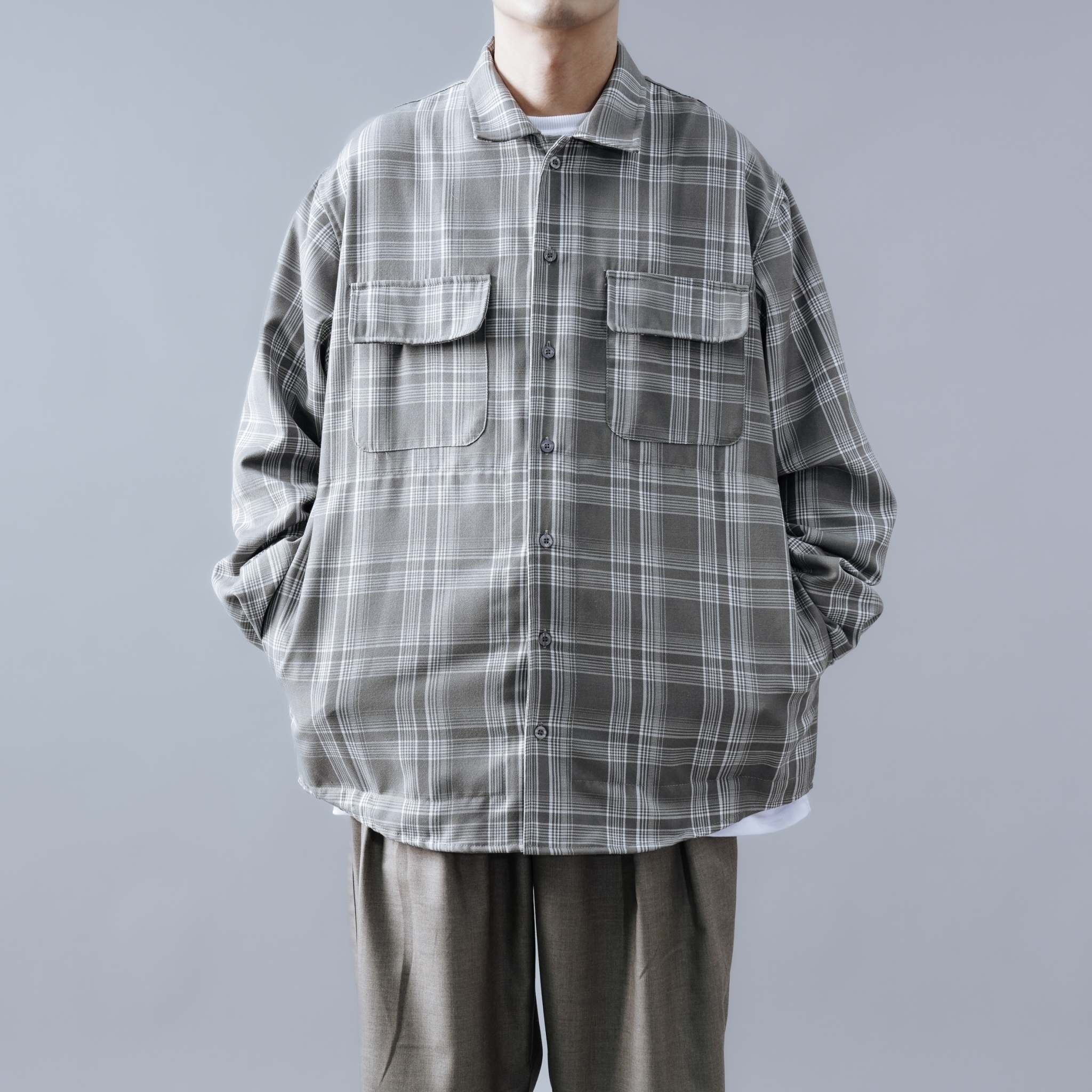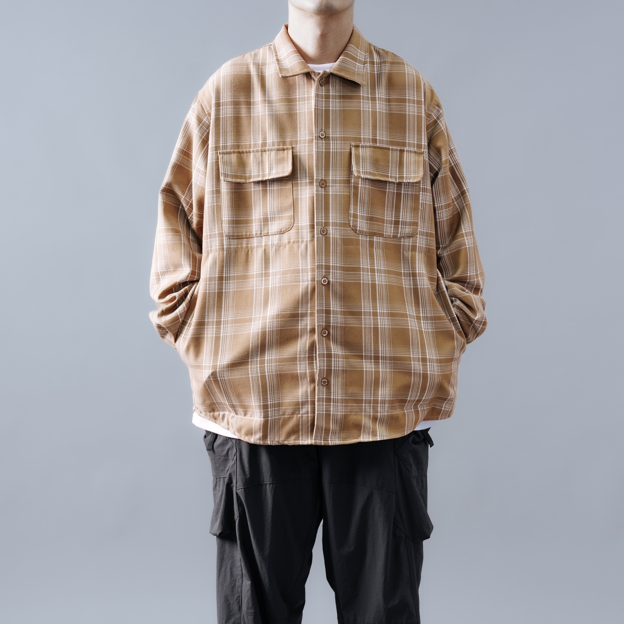 SBG 格紋寬鬆口袋長袖襯衫 SB1120