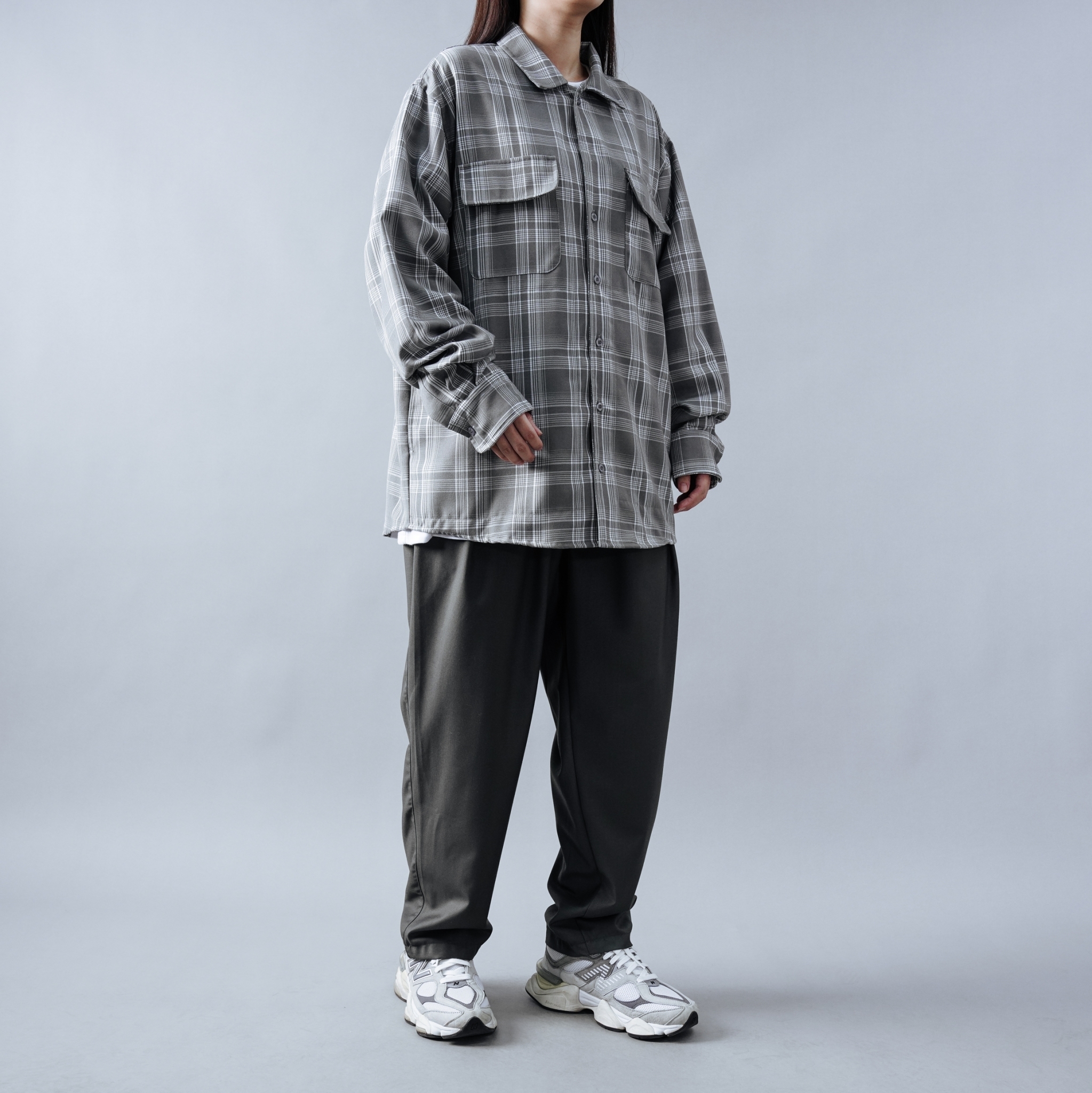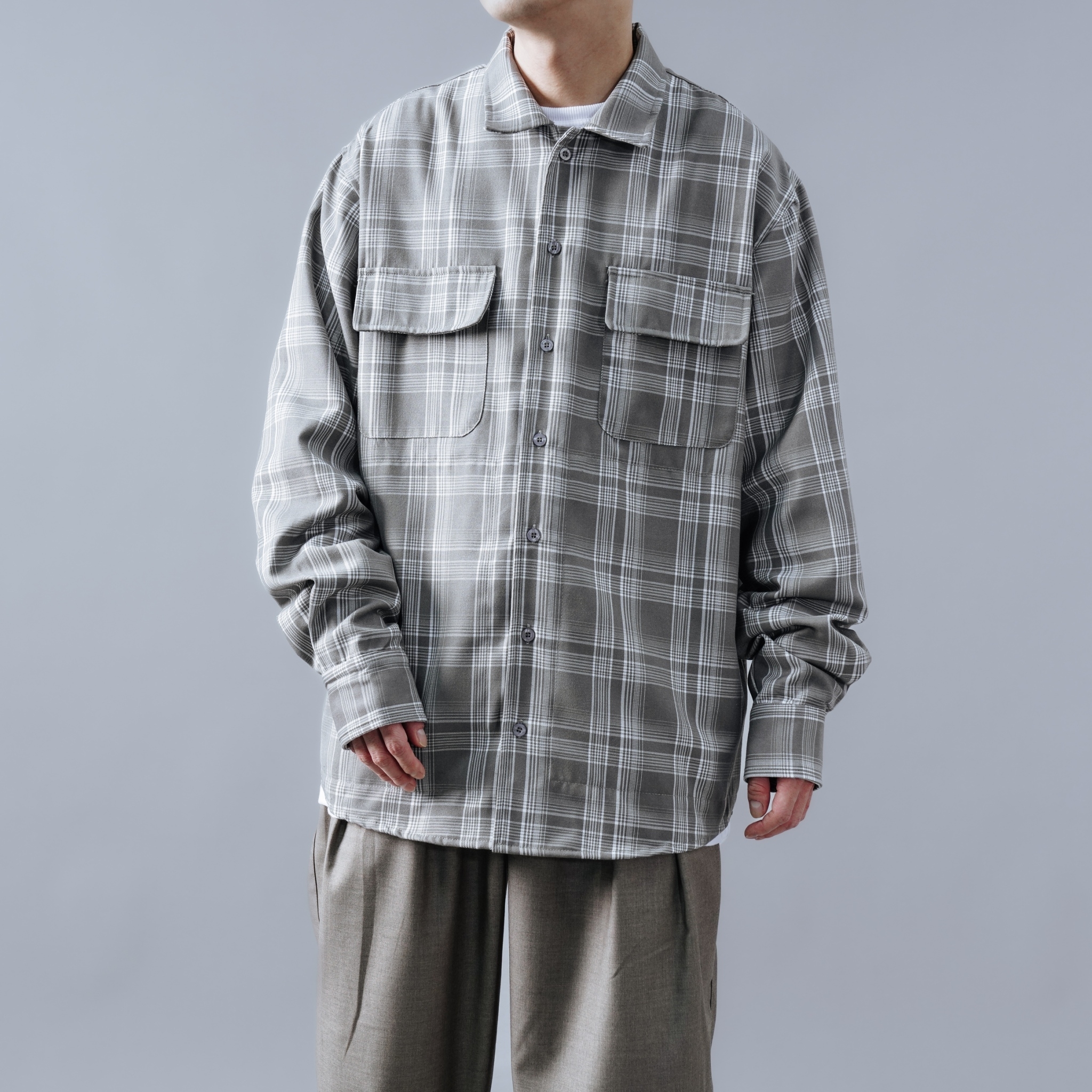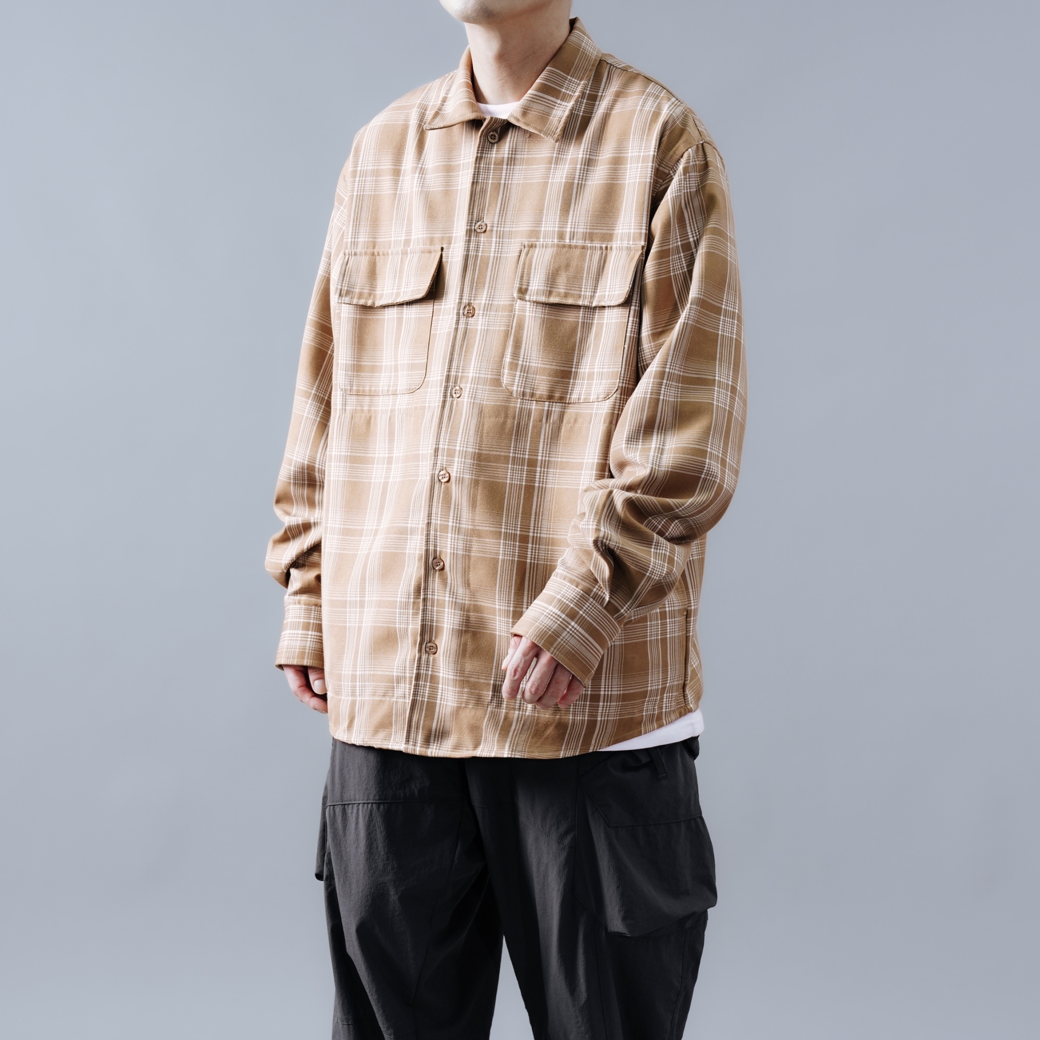 SBG 格紋寬鬆口袋長袖襯衫 SB1120
